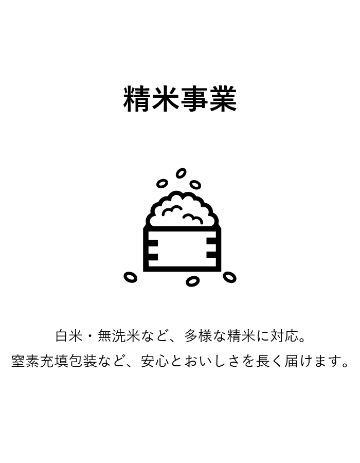 お米への深い知識と技術を持つ当社では、原料の選定からブレンド、精米、出荷に至るまで徹底した品質管理を実施。